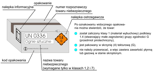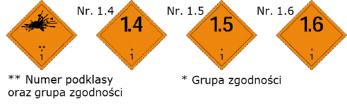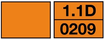 Każde opakowanie zawierające materiały wybuchowe musi być oznakowane:
