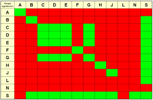 2. Klasa 1 dzieli się na sześć podklas (1.1-1.6) i trzynaście grup zgodności (A-S).