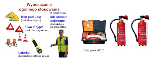 1. Gaśnice o łącznej pojemności co najmniej 12 kg proszku (lub równoważnej pojemności) – dla pojazdów o DMC powyżej 7,5 tony.