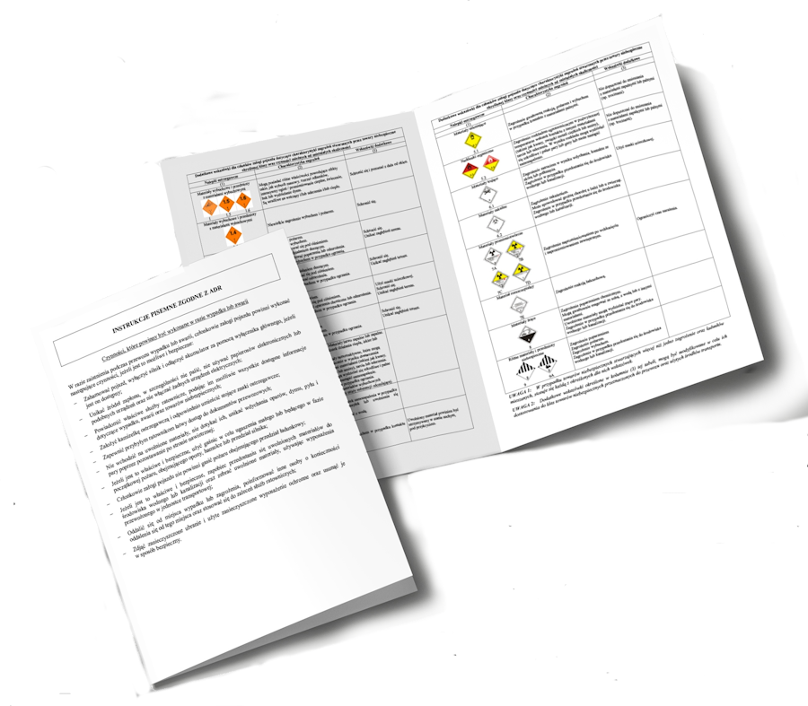 Zgodnie z przepisem 5.4.3.4, forma i zawartość instrukcji pisemnych powinny odpowiadać czterostronicowemu wzorowi zawartemu w umowie ADR. Instrukcje powinny zawierać: