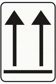 Oznakowanie to powinno być naniesione na dwóch przeciwległych pionowych bokach sztuki przesyłki, a groty strzałek powinny być skierowane ku górze.