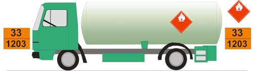 Zgodnie z przepisem 5.3.2.1.4, pojazdy-cysterny, pojazdy-baterie oraz jednostki transportowe przewożące jeden rodzaj towaru niebezpiecznego w cysternach, powinny być dodatkowo zaopatrzone w tablice barwy pomarańczowej z numerem identyfikacyjnym zagrożenia i numerem UN. Tablice te powinny być umieszczone: