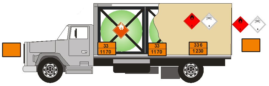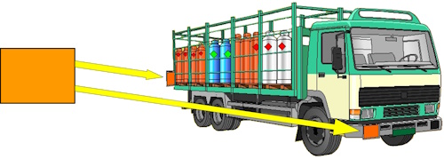 Zgodnie z przepisem 5.3.2.1.1, jednostki transportowe przewożące towary niebezpieczne powinny być zaopatrzone w dwie prostokątne tablice barwy pomarańczowej, umieszczone w płaszczyźnie pionowej. Jedna tablica powinna być przymocowana z przodu, a druga z tyłu jednostki transportowej, obie prostopadle do osi podłużnej tej jednostki.